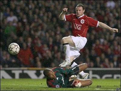 در اولین دیدار دور رفت مرحله نیمه نهایی فوتبال جام قهرمانان باشگاه های اروپا، منچستر یونایتد، آ ث میلان را 3 بر 2 شکست داد. وین رونی دردقیقه 90 گل پیروزی را به ثمر رساند.