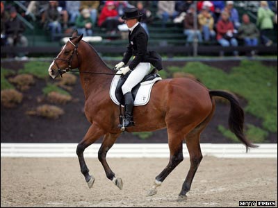 امیلی لیبی، سوار بر اسب به نام کهیر، در مسابقه درساژ از سری رقابت های سه روزه موسوم به کنتاکی رولکس (Rolex Kentucky) که در لکزینگتون ایالت کنتاکی برگزار می شود.