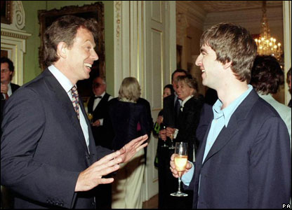 تونی بلر پس از عهده دار شدن پست نخست وزیری، تعدادی از شخصیت های هنری مشهور را دعوت کرد. نوئل گالاگر از گروه "او ای سیس" از جمله این افراد بود.