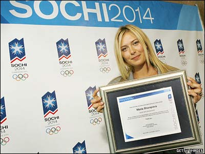 ماریا شاراپووا، ستاره شماره دو تنیس زنان جهان از روسیه، به عنوان سفیر حسن نیت برگزاری المپیک زمستانی 2014 در روسیه پلاک افتخار دریافت کرد.