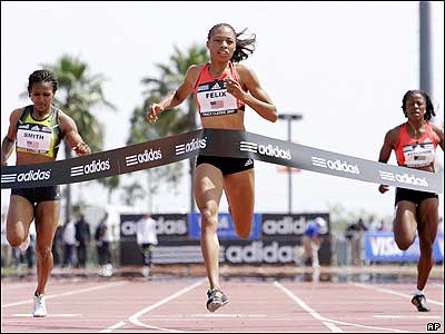 آلیسون فلیکس دونده آمریکایی، در مسابقات دو 200 متر زنان آمریکا، در سالن آدیداس در کالیفرنیا به مقام اول دست یافت