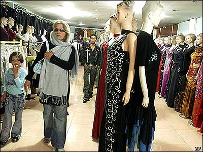 زن افغان در فروشگاهی در کابل در میان مانکن ها قدم می زند.