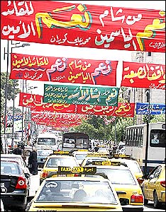 پلاکاردهایی با مضمون حمایت از بشار اسد در همه جای دمشق دیده می شود. رفراندوم درباره دوره ریاست جمهوری اسد روز یکشنبه در سوریه برگزار می شود.