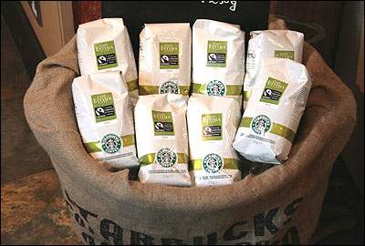 یکی از شعب کافی شاپ استارباکس - این قهوه خانه زنجیره ای آمریکایی هم برای جلب رضایت مشتریان خود اقدام به فروش محصولاتی کرده که هم منصفانه با زارع در کشورهای در حال توسعه برخورد می کند (فرترید) و هم به گفته این شرکت از کم ضررترین راه ها برای تولید آنها استفاده شده است. البته خیلی ها بر این عقیده اند که زندگی "سبز" راه جدیدی شده برای تجارت بیشتر تولید کنندگان
