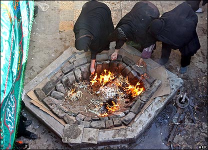 روشن کردن شمع در یکی از چهل نقطه برگزاری مراسم عزاداری در خرمآباد، ایران