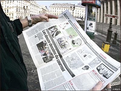 روزنامه "فرانس سوآر" چاپ فرانسه، روز چهارشنبه کل مجموعه دوازده تايی کاريکاتورها را مجددا چاپ کرده است. "فرانس سوآر" می گويد هدفش اين بوده تا "نشان دهد در جامعه سکولار، تعصبات مذهبی" جايی ندارند.