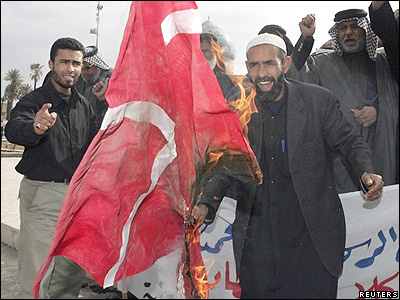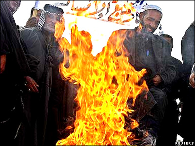 در بغداد، مسلمانان شيعه پرچم دانمارک را به آتش کشيده اند.