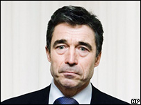 "ما بايد اين مساله را از راه گفتگو حل کنيم نه با خشونت." او حملات به سفارتخانه های دانمارک را در کشورهای مسلمان محکوم کرد و گفت: "مردم دانمارک دشمن اسلام نيستند. اما از ما تصوير مردمی ارائه می شود که گويی با دين اسلام دشمن ايم. اين تصوير کاذب است. افراط گرايانی که دنبال ستيز فرهنگها و اديان هستند اين تصوير را تبليغ می کنند و گسترش می دهند." "وضعيت کنونی بسيار برای ما ناخوشايند است و چيزی است که ما به آن عادت نداريم." او از جامعه بين المللی که از دانمارک حمايت کرده اند سپاسگزاری کرد از جمله از رئيس جمهوری آمريکا که "با دانمارک اظهار همبستگی" کرده است. نخست وزير دانمارک گفت که می خواهد با همه مردم و مسلمانان جهان با روحيه همدلی و تفاهم گفتگو کند: "بگذاريد با هم و با روحيه احترام و رواداری کار کنيم." تظاهرات دامنه دار تظاهرات در اعتراض به انتشار اين کاريکاتورها روز سه شنبه نيز ادامه يافت و به غرب آفريقا رسيد. در افغانستان دست کم 3 نفر از معترضان در هجوم به يک پايگاه سربازان نروژی کشته شدند.