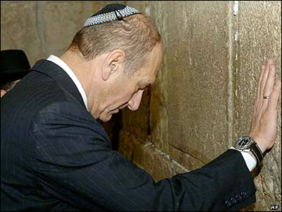 اهود اولمرت قبل از ايراد سخنرانی و تشريح برنامه های خود برای چهار سال آينده در کنار ديوار ندبه دعا کرد.
