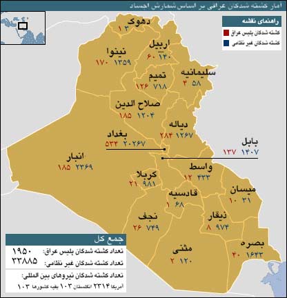 آماری از کشته شدگان جنگ و نا امنی در عراق | |||||||||||||||||||||||||||||||||||||||||||||||||||||||||||||||||||||||||||||||||||||||||||||||||||||||||||||||||||||||||||||||||||