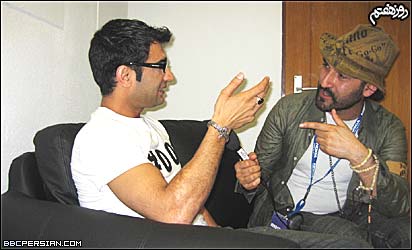 فکر می کردی بعد از فوتبال بیای و توی فرانکفورت بخونی؟ این در حقیقت ایده خود من بود! چی شد به این فکر افتادی؟ چون مطمئن بودم ایرانی های زیادی میان اینجا. البته اگه ایران برده بود اینجا خیلی شلوغ تر هم میشد. و از یکسال پیش تقریبا طرح این کنسرت رو ریختیم. البته خوبیش اینه که مردمی که حالشون به خاطر باخت گرفته است، امشب یک شادی می کنن. درسته؟ درسته. مردم هم امشب خیلی باحالن و خیلی هاشون از ایران آمدن. به همين خاطر جو خیلی خوبیه.