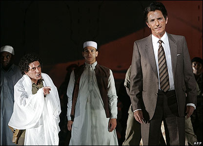 اين اپرا اسمش "قذافی، اسطوره زنده" است و موضوعش همانطور که حدس می زنيد درباره زندگی کلنل معمر قذافی ست رهبر جنجالی ليبی که بيشتر از ۳۰ سال است که نمی تواند دل از رهبری اين کشور بکند. به جز موضوع اين اپرا که رهبر ليبيست و زن بودن محافظانش شاخ روی سر خيلی ها سبز کرده-البته به جز ترفندهای سياستمداريش- ، نوع موسيقی ای که در آن استفاده شده رپ و فانک است که برای خيلی از اپرا بروها تازگی داشته. با اين همه تهيه کننده های اين اپرا می گويند اصلا قصدشان اين نبوده که جنجال به پا کنند و فروششان را بالا ببرند . فقط می خواستند ثابت کنند جوانترها را هم می شود به تماشای اپرا کشاند. به شرطی که زبانشان را بدانی. |