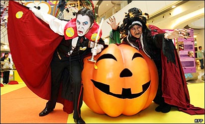 در آن زمان اسم اين روز رو All saints day ( روز همه قديسين ) می ناميدند. اين روز کم کم شب شد و قديسين هم به ارواح تبديل شدند. بنابراين اسم اين روز شد ( All hallows eve ) و بعدها کم کم شد هالووين ( Halloween ). بعدها همين مراسم با مهاجرت ايرلندی ها به آمريکا، به اونجا رفت. توی اين جشن برای ترسوندن ارواح خبيس لباس ترسناک می پوشند. اين روزها هالووين بيشتر مال بچه هاست. اونها ماسک های ترسناک و عجيب غريب می زنن و برای گرفتن شيرينی و شکلات به در خونه همسايه ها ميرن. بعضی وقت ها هم قصه های ترسناک برای هم تعريف می کنن. يک داستان ترسناک