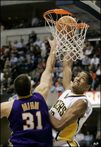 در رقابت های بسکتبالNBA شب گذشته (اول فوريه)، دنی گرانجر از اينديانا پاکرز توپ را به سمت حلقه تيم حريف لوس آنجلس ليکرز پرتاب می کند، اينديانا پارکرز لوس آنجلس را با اختلاف 79-105 در ايندياناپوليس شکست داد.