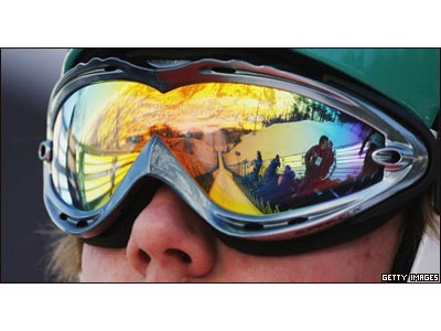 انعکاس تمرينات پرش اسکی قبل از مسابقات المپيک زمستانی تورين درعينک آنسی کيوورانتا از فنلاند