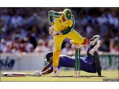شيرجه چاميدا واس از تيم سريلانکا به سوی توپ در فينال مسابقات کريکت آدلايد، بين اين تيم و استراليا که به سود تيم سريلانکا به پايان رسيد.