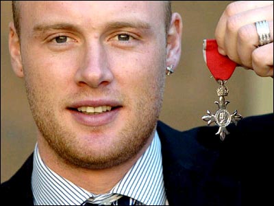 اندرو فلينتوف کريکت باز تيم ملی انگلستان، شب گذشته (نهم فوريه) طی مراسمی تشريفاتی در کاخ باکينگهام از ملکه اين کشور لقب MBE دريافت کرد.