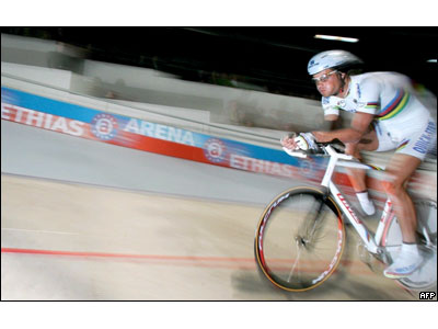 تام بونن قهرمان بلژيکی تبار مسابقات دوچرخه سواری هنگام شرکت در مسابقات سه کيلومتر مردان داخل سالن معروف به 'لوتو 6' در هاسلت بلژيک