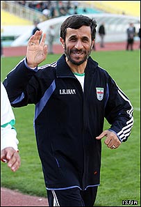 محمود احمدی نژاد در تمرين تيم ملی فوتبال ايران آخرين تمرين تيم ملی فوتبال ايران برای انجام ديدار دوستانه روز چهارشنبه مقابل تيم کاستاريکا، عصر سه شنبه با حضور محمود احمدی نژاد، رئيس جمهور اين کشور، در ورزشگاه آزادی تهران برگزار شد. آقای احمدی نژاد پس از حضور در تمرين تيم ايران و گفتگو با بازيکنان و کادر فنی اين تيم با پوشيدن لباس ورزشی با ملی پوشان تمرين کرد. ميثم بهرامی روزنامه نگار ورزشی که درمحل تمرين تيم فوتبال ايران در ورزشگاه آزادی حضور داشته، در اين مورد به بی بی سی گفت: "در اواسط تمرين آقای احمدی نژاد بصورت سرزده وارد زمين چمن شد و ازتمرينات ملی پوشان ايران بازديد کرد." " او در حالی که لباس سفيد تيم فوتبال ايران و گرمکن ورزشی بر تن کرده بود، ابتدا به اتفاق محمد علی آبادی، رئيس سازمان تربيت بدنی، و محمد دادکان، رئيس فدراسيون فوتبال، دور ورزشگاه دويد وسپس با بازيکنان دقايقی به تمرين پرداخت و چند ضربه پنالتی هم به سمت دروازه ابراهيم ميرزاپور فرستاد."