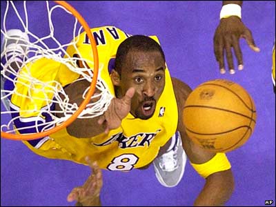 برگرداندن توپ از حلقه توسط کوبی برايانت از لس آنجلس ليکرز در مسابقه بين ليکرز و سن آنتونيو اسپرز