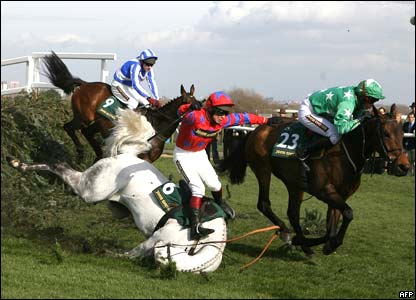 جوکی ريچارد جانسون در دومين روز از مسابقات اسب سواری توفام استيپل در ليورپول کنترل خود را از دست داد.