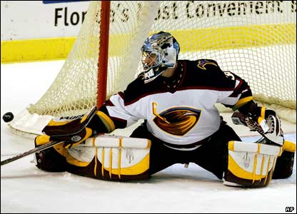 تصويری از سری مسابقات هاکی روی يخ NHL، در سان رايز بين دو تيم 'آتلانتا ترشرز' و 'فلوريدا پنترز'