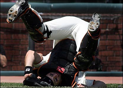 مايک متنی از جاينتز، در مسابقه بيس بال بين دو تيم سان فرانسيسکو جاينتز و آريزونا