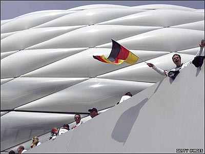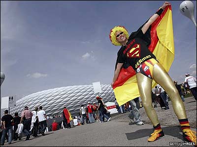 يکی از طرفداران تيم آلمان در مقابل استاديوم آليانز شهر مونيخ