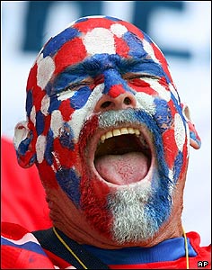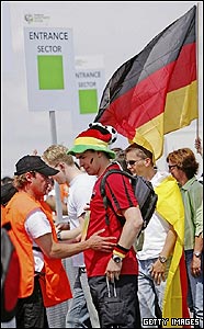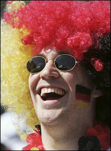 يکی از طرفداران تيم آلمان با کلاه پرچم آلمان