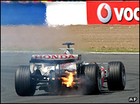 خوان پابلو مونتويا از تيم مکلارن بنز ديگر راننده ای بود که در اوايل مسابقه، با ژاک ويلنوو، راننده تیم ب ام و، از سمت راست اتومبيلش برخورد کرد و در قسمتی از اتومبيلش حفره ای ايجاد شد که کنترل اتومبيل را برای او دشوار ساخت. اين راننده کلمبيايی پس از پايان مسابقه گفت فکر می کرده که ديگر ادامه مسابقه برايش ممکن نيست و اميدی به کسب امتیاز نداشته است، اما پس از چند دور متوجه شد که می تواند اتومبيل را تا آخر کنترل کند و در نهايت مسابقه را در مکان ششم به پايان رساند. گراندپری بريتانيا که معمولا با باران و لغزندگی پيست همراه است، بر خلاف انتظار، در روزی بسيار گرم و آفتابی برگذار شد که باعث رضايت رانندگان و تماشاچيان اين مسابقه بود. چهره های شاخص و معروف معمولا برای ديدن اين مسابقات حضور پيدا می کنند که اين بار بريتانيا شاهد 'اکسل رز' خواننده گروه راک Guns 'n' roses بود. مرحله نهم اين مسابقات يکشنبه 25 ماه ژوئن در کانادا خواهد بود. |