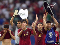 دقیقه 29، گل اول مکزیک: فونسکا روی ضربه کرنر دروازه پرتغال را برای اولین بار در این جام باز کرد. نیمه اول با همان نتیجه دو بر یک به نفع پرتغال تمام شد. اگر نتایج بدست آمده در نیمه اول دو بازی تا آخر بازی تغییر نکنند، تیم های پرتغال و مکزیک از این گروه صعود خواهند کرد. دقیقه 60: گومز بازیکن تیم مکزیک از زمین اخراج شد. بازی با همان نتیجه 2 بر 1 به نفع پرتغال تمام شد. پرتغال با 9 امتیاز به عنوان تیم اول به دور بعد صعود کرد و مکزیک نیز با 3 امتیاز دوم شد. ترکيب دو تيم پرتغال: ریکاردو، میگل، کاروالیو، میرا، کانیرا، پتیت، مانیش، تیاگو، فیگو، سیمائو، پستیگا (ریبیرو 69) مکزيک: سانچز، پیندا (گونزالز 69)، مارکز، اوسوریو، سالسیدو، رودریگز، پاردو، پرز، مندز، فونسکا، براوو