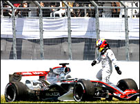 ديگر راننده تيم مکلارن بنز، خوان پابلو مونتويا، هنگام شروع مسابقه از چند راننده سبقت گرفت ولی يکی از آنها، نيکو رازبرگ، راننده تازه وارد آلمانی تيم ويليامز، راه را بر او بست و باعث برخورد دو اتومبيل شد که رازبرگ از پس از اصابت با ديوار از مسابقه خارج شد. اما مونتويا که بر اثر تصادف مجبور شد برای تعويض قطعه ای از اتومبيلش به جايگاه برود، چندين رتبه عقب افتاد. او در يکی از پيچ ها با سرعت به کناره پيست خورد و امتيازی کسب نکرد. ديويد کولتهارد بريتانيايی (ردبول ريسينگ) که از رديف آخر مسابقه را شروع کرده بود توانست با سبقت های مکرر خود را به مقام نهم برساند. تنها سه دور تا پايان مسابقه او توانست از جنسون باتون (هوندا) هم کشوری خود سبقت ديگری گرفته و تنها امتياز باقی مانده اين دوره را از او گرفت و به اسم خودش کرد. مرحله دهم اين مسابقات يکشنبه آينده دوم ماه ژوئيه در آمريکا خواهد بود. |