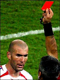زين الدين زيدان کاپيتان تيم فرانسه در جام جهانی آلمان که در بازی فينال در مقابل ايتاليا، مارکو ماتراتسی را با ضربه سر نقش بر زمين کرد، از سوی فيفا علاوه بر پرداخت جريمه نقدی از حضور در سه بازی نيز محروم شد. همچنين هيئت اجرايی فيفا در پی تحقيقی که در خصوص اتفاق بازی فينال انجام داده، ماتراتسی، بازيکن ايتاليايی را نيز به دليل تحريک زيدان در بازی فينال، از حضور در دو بازی محروم کرده است. زيدان و ماتراتسی هر کدام به ترتيب به پرداخت جريمه ای معادل 6 هزار و 4 هزار دلار محکوم شده اند. فيفا در بيانيه ای اعلام کرده "هر دو بازیکن توهين لفظی ماتراتسی به زيدان را تائيد کرده اند، اما گفته اند اين توهين نژادپرستانه نبوده است." محروميت زيدان از حضور در سه بازی، تنها جنبه تشريفاتی دارد، زيرا وی پس از بازی فينال کناره گیری خود را از فوتبال اعلام کرده بود. در عوض اين بازيکن بايد به مدت سه روز با هيئت اجرايی فيفا همکاری کند.