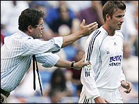 رسانه های خبری اعلام کرده بودند که بکام شايد زودتر از موعد خاتمه قراردادش رئال را ترک کند تا به ال.ای.گلکسی ملحق شود. مياتوويچ همچنين گفت با توجه به سياست فرصت دادن به بازيکنان جوان، بعيد است بکام باز هم در تيم رئال بازی کند. - ايوان کولف بلغاری به عنوان سرمربی جديد تيم ملی فوتبال اندونزی انتخاب شد. کولف که پيش از اين از سال ۲۰۰۲ تا ۲۰۰۴ نيز مربيگری تيم اندونزی را بر عهده داشت، جانشين پيتر وايت مهاجم اسبق تيم ملی انگليس شده است. وايت هفته گذشته پس از ناکامی اندونزی در مسابقات فوتبال قهرمانی آسه آن اخراج شد. اندونزی يکی از چهار ميزبان مسابقات جام ملتهای آسيا در سال ۲۰۰۷ است. - به گزارش خبرگزاری رسمی ايتاليا، آنسا، ماسيمو اودو ملی پوش ايتاليايی تيم لاتزيو به آث ميلان پيوسته است. باشگاه آث ميلان ۷/۷۵ ميليون يورو برای در اختيار گرفتن اين بازيکن ۳۰ ساله پرداخته است.اودو که عضو تيم ملی فوتبال ايتاليا در جريان قهرمانی در جام جهانی اخير بود، در سال ۲۰۰۲ از ورونا به لاتزيو پيوست. - تيم فوتبال اميد چين پنجمين بازی تدارکاتی خود در اردوی اروپايی را با برتری ۴ بر يک برابر تيم دسته سومی آوينيون از فوتبال فرانسه پشت سر گذاشت. تيم چين چهار ديدار گذشته خود را با شکست پشت سر گذاشته بود. تيم فوتبال اميد چين خود را برای حضور در بازيهای المپيک سال ۲۰۰۸ که به ميزبانی اين کشور برگزار می شود آماده می کند. - مارکو دی وايو مهاجم ايتاليايی موناکو به تيم دسته دومی جنوا در ايتاليا می پيوندد. دی وايوی ۳۰ ساله پيش از اين در تيمهای پارما، يوونتوس و والنسيا نيز بازی کرده است. جنوا، اکنون در مکان سوم سری B قرار دارد و از بخت صعود به رقابتهای سری A برخوردار است. - رامون کالدرون رييس باشگاه فوتبال رئال مادريد اسپانيا اعلام کرد اين باشگاه بزودی بزرگترين قرارداد تبليغ روی پيراهن بازيکنان را امضا خواهد کرد. کالدرون اشاره ای به نام طرف اين قرارداد که جايگزين شرکت ورشکسته بنکيو تايوان می شود، نکرد. مبلغ قرارداد پنج ساله رئال مادريد با شرکت بنکيو که قرار بود تا سال ۲۰۱۰ ادامه پيدا کند، ۱۰۰ ميليون يورو بود. در حال حاضر يوونتوس با امضای قراردادی پنج ساله به ارزش ۱۱۰ ميليون يورو با شرکت نفتی تام اويل ليبی، بزرگترين قرارداد تبليغ روی پيراهن بازيکنان در جهان فوتبال را در اختيار دارد. |