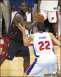 بازیکنان این تیم هرچند در طی بازی به شدت لبرون جیمز را تحت فشار دفاع خود قرار داده بودند، اما کنترل بازی را در اختیار نداشتند. هر چند دیترویت در پرتابها (به ویژه پرتاب سه امتیازی که کلیولند تنها یک از ده پرتاب را به ثمر رساند) بهتر از کلیولند عمل کرد، اما نتیجه تلاش بیشتر بازیکنان کلیولند برای توپ دزدی و دراختیار گرفتن توپهای گل نشده و برگشته از حلقه در دو سوی میدان (ریباند دفاع و حمله) در آمار به وضوح منعکس شد. ضمن اینکه کلیولند بسیار کمتر اشتباه کرد و توپ را لو داد. دشواری های قضاوت تصمیم "پادشاه" جیمز در مصاحبه مطبوعاتی پس از مسابقه، از تصمیم خود و پاس دادن بجای شوت کردن در ثانیه های پایانی بازی دفاع کرد و گفت نه تنها بر اساس استراتژی تصمیم گرفته شده عمل کرده، بلکه وقتی به زیر حلقه رسید تعداد مدافعانش به دو نفر افزایش پیدا کرده بود؛ موضوعی که تصاویر تلوزیونی آنرا لزوما تایید نمی کند. حتی مایک براون، مربی کلیولند هم اذعان کرد که او، زیر سبد دیترویت موقعیت کافی را داشته که حتی "بنشیند و قهوه بنوشد!" با این حال برخی کارشناسان اذعان کرده اند که شاید انتظار گرفتن تصمیمی در این حد دشوار، آنهم در کسری از ثانیه، برای بازیکنی تنها ۲۲ ساله، هر چند در اندازه های لبرون جیمز نابجا باشد. جیمز در این بازی ۱۰ ریباند، ۹ پاس منجر به گل و ۴ توپ دزدی نیز داشت و اگر شوت دانیل مارشال گل شده بود، جیمز هم با کسب یک ترپیل دابل، قهرمان بازی قلمداد می شد. |