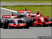 اما مسا بعد از چند دور به دلیل قدرت کافی اتومبیل و مهارت بالای رانندگی اش توانست با سبقتهای مکرر خود را به مقام نهم برساند و با چندین سبقت دیگر پس از سوخت گیری درنهایت در مقام پنجم از خط پایان بگذرد. یک عکس، 18 دلار تیم ردبول ریسینگ برای کمک به آسیب دیدگان از ناحیه نخاع، با ایده جالب و طرحی نو بر روی اتومبیل هایش در این پیست به رقابت پرداخت. علاقمند ورزشهای موتوری که تنها با پرداخت بیش از 18 دلار، عکسهای خود را به اندازه کوچک برای این تیم فرستادند تا آنها را بر روی دو اتومبیل این تیم بچسبانند، و با جمع شدن حدود 30 هزار تصویر مبلغی معادل یک میلیون دلار برای خیریه به این آسیب دیدگان جمع شد. از جمله چهره های معروف و ستارگان برتر دنیای ورزش و موزیک بریتانیا که به دیدن این مسابقه آمده بودند، می توان از دیوید بکهام بازیکن سابق رئال مادرید و تیم ملی انگلستان و همسرش ویکتوریا و همچنین گروه پاپ Girls Aloud که مهمانان ویژه تیم های مختلف بودند نام برد. پیروزی رایکونن طرفداران فراری را خیلی خوشحالی کرد، اما دل 95 هزار تماشاچی علاقمند این مسابقات که اکثر آنها برای دیدن پیروزی همیلتون رفته بودند را شکست. البته همیلتون همچنان با 70 امتیاز در صدر جدول قهرمانی قرار دارد. رایکونن با 52 امتیاز و در مجموع 18 امتیاز کمتر در مکان سوم جدول قهرمانی قرار دارد، اما تا کنون بیشترین برد را در مسابقات فصل جدید داشته است. |