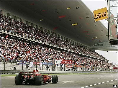 کیمی رایکونن آخرین دور مسابقه را از مقابل جایگاه اصلی تماشاچیان پیست شانگهای آغاز می کند. او با پیروزی در این مسابقه تنها هفت امتیاز با لویس همیلتون فاصله دارد و هنوز امکان قهرمانی او وجود دارد.