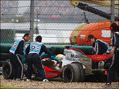 مسئولان ایمنی مسابقه سعی کردند همیلتون را به روی پیست هل بدهند اما ارتفاع کم کف اتومبیل های فرمول یک باعث شد همیلتون در محوطه شنی امکان حرکت پیدا نکند.