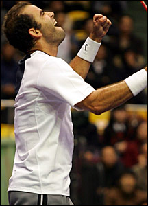 وقتی پیت سمپراس، برنده هفت دوره مسابقات ویمبلدون و تنیس باز شماره یک پیشین جهان در ست اول 4-2 از تنیس باز شماره یک کنونی جهان پیش افتاد، وقت شادی سمپراس بود.
