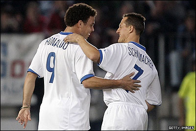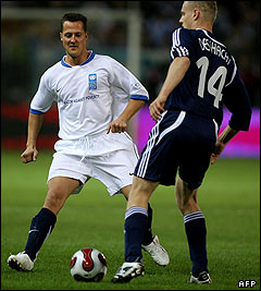 مایکل شوماخر، قهرمان پیشین مسابقات فرمول یک بعنوان هم تیمی رونالدو در مسابقه شرکت داشت و یک گل به ثمر رساند