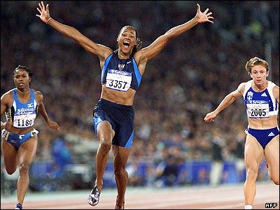 کمتر رقابتی در سال 2007 از ناپاکی دوپینگ مبرا ماند. بری باندز (بیس بال)، مارتینا هینگیس (تنیس)، فلوید لندیس (دوچرخه سواری) و ماریون جونز (دو میدانی) بزرگترین متهمان بودند. عملیاتی بین المللی برای کشف شبکه عظیم توزیع دارو انجام شد و سازمان مبارزه با دوپینگ مجازات اولین استفاده را به چهار سال محرومیت از میادین ورزشی افزایش داد. مدالهای ماریون جونز آمریکایی، قهرمان المپیک سیدنی (تصویر) پس گرفته شد و رکوردهای او پاک شد؛ گویا حوادث درون این عکس هرگز رخ ندادند. |