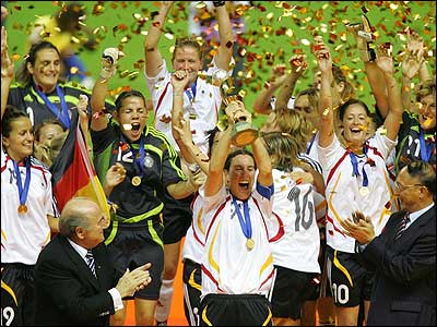 برای اولین بار در جام جهانی فوتبال زنان، تیمی از عنوان قهرمانی خود با موفقیت دفاع کرد. در جام جهانی چین، آلمان با کمک بریگیت پرینتس، کاپیتان با تجربه خود، در مسابقه اول 11-0 آرژانتین را شکست داد تا رکوردی ثبت کند و تا پایان رقابتها گلی دریافت نکرد. آنها در فینال تیم فوق العاده تکنیکی برزیل را 2-0 شکست دادند.