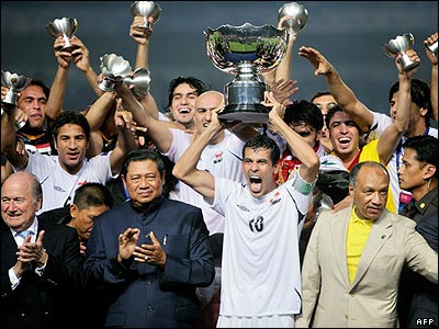 جام ملتهای آسیا در سال 2007 برای اولین بار توسط چهار کشور میزبانی شد و عراق برای اولین بار این جام را به خانه برد. پیروزی در نیمه نهایی مقابل کره جنوبی و در فینال مقابل عربستان سعودی، برای چند ساعت هم که شده، خشونتها در عراق را متوقف کرد، اتحاد را به دولتی تقریبا تجزیه شده بازگرداند و مردم افسرده از خشونت مکرر را شاد ساخت.