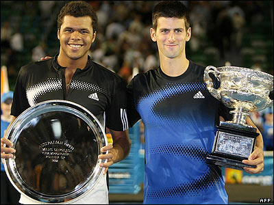 نواک جاکوویچ، تنیس باز 20 ساله صرب، پس از ناکامی در 12 گرند اسلم، با قهرمانی در تنیس آزاد استرالیا اولین گرند اسلم خود و یک تنیس باز صرب را به دست آورد. جاکوویچ در فینال این مسابقات در چهار ست ژو ویلفرید سونگا را شکست داد که در جمع فهرست رسمی امید داران قهرمانی در این مسابقات قرار نداشت. با این وجود جاکوویچ در نیمه نهایی راجر فدرر تنیس باز شماره یک، و سونگا نادال تنیس باز شماره دو مردان جهان را شکست دادند تا در فینال رو در روی یکدیگر قرار گیرند.