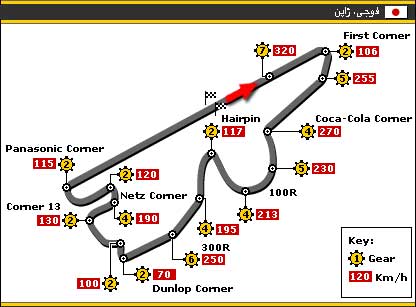 روی هم رفته فوجی پیست خوبی است با یکی دو پیچ خوب که رانندگان را به زحمت می اندازد مخصوصاً پیچی به نام ۱۰۰R. مسیر ۱.۶ کیلومتری مستقیم این پیست هم فرصت خوبی برای سبقت گرفتن به راننده ها می دهد. اگر در روز مسابقه هوا خوب باشد، منظره زیبای کوه آتشفشانی فوجی مسابقه فرمول یک در این پیست را زیبا تر خواهد کرد. با این حال هنوز خیلی ها معتقدند که پیست فوجی قادر نخواهد بود چالشی برابر با آنچه که رانندگان در پیست سوزاکا با آن روبرو بودند را فراهم آورد. |