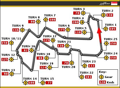 این شهر واقع در جنوب شرق آسیا، میزبان اولین مسابقه فرمول یک در شب و زیر نور مصنوعی خواهد بود و بسیاری از دست اندرکاران فرمول یک پیش بینی می کنند که این مسابقه تجربه ای موفق باشد. اما اگر قرار باشد بخاطر راحتی بینندگان اروپایی مسابقات آسیا در شب برگزار شود، این پرسش ایجاد می شود که اصلا چرا باید این مسابقات را در آسیا برگزار کرد و چرا نباید تمام مسابقات را به اروپا منتقل کرد؟ طبیعی است که پاسخ این است که مسابقات جدید، نسبت به مسابقات قدیمی، درآمد بالاتری نصیب شرکتهای تبلیغات تلویزیونی و سازماندهندگان فرمول یک می کنند. |