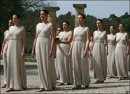 هنرپیشگان یونانی لباس باستانی راهبه های المپیا را برتن کردند. المپیک اولین بار در سال 776 قبل از میلاد مسیح در این مکان برگزار شد.