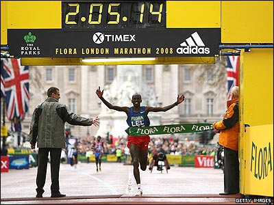 مارتین لل از کنیا، برای سومین بار در چهار سال گذشته قهرمان دو ماراتن لندن شد. او در این مسابقه توانست از سامی وانجیرو، دیگر دونده کنیایی این رقابت سالیانه، پیشی بگیرد و دو ماراتن لندن را در عرض دو ساعت و پنج دقیقه و پانزده ثانیه، که یک رکورد تازه محسوب می شود، به پایان برد. لل بیست و نه ساله امروز توانست رکود سال 2002 خالد خانونچی که دو ساعت و پنج دقیقه و 38 ثانیه بود را بشکند. در این رقابت هزاران دوندنده غیرحرفه ای هم حضور داشتند.