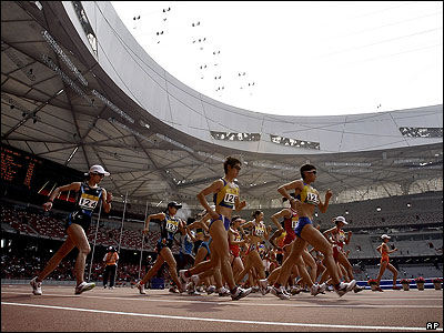 لیو هونگ از چین، هم با پیروزی در مسابقه راهپیمایی 20 کیلومتر عنوان اولین برنده زن یک مسابقه در استادیوم "آشیانه پرنده" را تصاحب کرد.