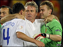 این مربی که قبلا هدایت تیم آلانیا ولادیکاوکاز در جمهوری اوستیای شمالی روسیه را بعهده داشته می گوید: "اکنون باید دید این سیستم چقدر خوب سازماندهی می شود و تا چه اندازه توجه به توسعه بلند مدت معطوف می گردد." تایم از زبان ویکتور گوسف، مفسر سرشناس فوتبال در روسیه هم هشدار می دهد که سالها طول خواهد کشید تا این سیستم به تعداد کافی بازیکنان جوانی تولید کند که روند "شکست های وحشتناک دوران پروسترویکا و اوائل دهه 90" را معکوس کنند؛ دورانی که ساختار ورزش شوروی سابق دچار فروپاشی شد و جوانان زیادی ورزش را رها کردند. این هفته نامه آمریکایی معتقد است: "با پول شرکتها و بازرگانان روسی بختی برای احیاء موفقیت های پیشین وجود دارد." تایم می نویسد: "حتی اگر روسیه سروصدای چندانی هم در یورو 2008 نکند، موفقیتی دیگر پیش رو است: مقام های روسی از تمایل به میزبانی جام جهانی 2018 صحبت می کنند." |